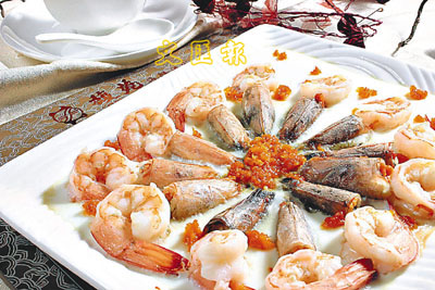 ■由花雕醉雞和花雕醉蟹變奏而成的「白雪藏龍」,海蝦肉質清爽,加入有暖身作用的花雕酒,美酒佳餚共冶一爐。$168