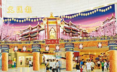 青衣城內的天花掛上多個綢緞燈,富有傳統中國過年氣氛。 地鐵商場提供