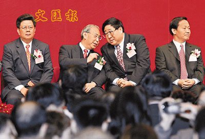 中聯辦社工部昨日舉行一年一度的新年酒會,特區政府高官和各界名人齊齊捧場,官紳名流,衣香鬢影。多位特區政府高官在政務司司長許仕仁的帶領下出席酒會,包括有保安局局長李少光、工商及科技局局長曾俊華、公務員事務局局長王永平、民政事務局局長何志平、經濟發展及勞工局局長葉澍i、政制事務局局長林瑞麟、衛生福利及食物局局長周一嶽、警務處處長李明逵、海關關長湯顯明等。