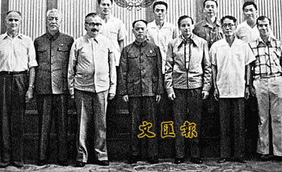 ■圖為姚文元(前排左四)會見外國來賓。網上圖片