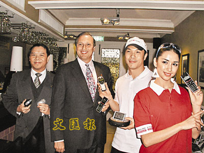 ■黃譚偉(左一)及Global Sources展覽部總經理Chuck Armitage(左二)。 本報記者李永青 攝