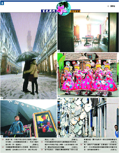 01 風雪不息,令意大利北部的交通陷入癱瘓,在空無一人的佛羅倫斯街道上,何妨大膽在路中間,來一個濕吻。 (美聯社)