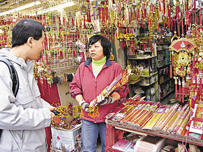 【本報訊】(記者 羅敬文)為配合祈福大會的安排,黃大仙祠昨天封祠長達8小時,原訂的「朝七晚五」對外開放時間,縮短為下午3時至5時,使祠外售賣香燭祭品的店舖被迫縮短經營時間,部分店舖更決定稍遲開門,盡力在僅有的2小時開放時間內,拚命地做生意,但仍難免損失,有店舖生意額更大跌80%。