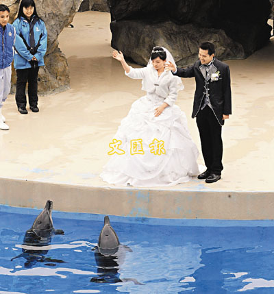 【本報訊】(記者 郝君兒)婚姻,是一生一世的盟約,兩對新人——駱璟華與黃嘉敏,余偉彤與歐詠詩,昨天都不約而同選定海洋公園去訂立這愛的誓約。駱氏夫婦笑指「望住海洋公園大」的情意結,令他們一知道海洋公園開辦婚禮即時申請;余氏夫婦則表示,二人拍拖時在公園內的「三文治情緣」回味再三,故「捨迪園取海園」,沒加考慮已決定在公園留下動人回憶。