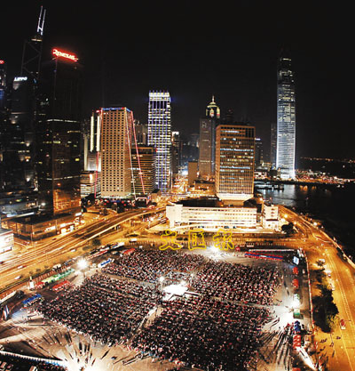 相信是最後一次在添馬艦舉行的萬人盆菜宴,筵開1100席,14000人同時晉餐。 本報記者潘達文攝