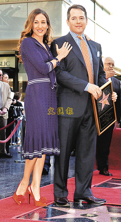 著名百老匯歌舞劇演員兼影星馬修波特歷,前日帶同妻子亦即《色慾都市》女主角莎拉謝茜嘉柏加,出席荷里活星光大道的授勳儀式。馬修與另一男星尼敦連,都是在當日成為「大道之星」,全因二人正忙於為百老匯音樂劇《The Producers》的全新電影版本趕戲,今趟獲獎或許就是一種宣傳呢。 文:藝能小子/圖:路透社