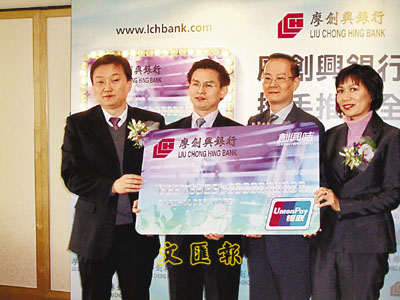 ■中國銀聯與廖創興銀行合作推出全新銀聯港幣創興卡,左二為中國銀聯國際業務總部副總裁黃興海。 本報記者吳文爾 攝
