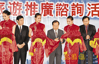 ■陳鑑林(右三)出席浙江旅遊推廣會。本報記者李志樑 攝