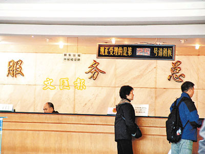 吳悅成(右)在工聯辦人員陪同下辦理認領亡妻遺體手續。