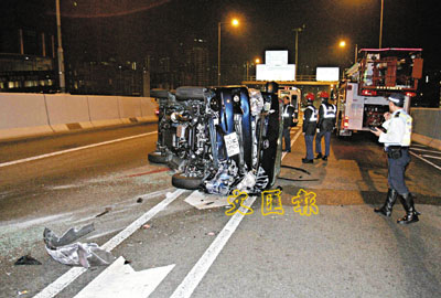 涉醉駕男子姓王,46歲,被驗出酒精含量超標4倍,被捕帶署,經調查後暫准保釋。他報稱,因扭萼{避一輛切線的輕型貨車而失控。