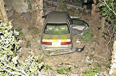 衝落10米斜坡的私家車,撞到大樹始停下。
