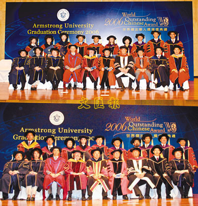 【本報訊】(記者 沈清麗)美國哈姆斯頓大學榮譽博士暨世界傑出華人獎頒獎典禮,日前假香港灣仔會展演講廳盛大舉行。來自工商界、教育界、娛樂界共20位名人榮獲頒授「2006世界傑出華人獎」。
