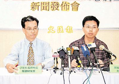 ■陳潤根(左)指社會投入大量資源進行國民教育,但成效並不顯著。右為何鴻智。 本報記者曾媚 攝