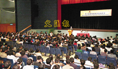 【本報訊】香港中文大學昨日舉辦中六生優先錄取計劃資訊日,吸引八百多名尖子及家長參加,中大副校長楊綱凱,輔導長何培斌及入學及學生資助處處長周陳文琬,分別向與會尖子及家長講解中大的特色,國際學生交換生計劃、舍堂生活及學術研究等。另外,中大各學院分別於不同的演講廳安排講座、諮詢及問答環節,使參加者能夠按自己的興趣出席有關學院的活動。