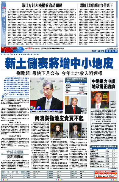他指出,05/06年度的土地收入中,來自土地拍賣的收入雖然較少,但補地價則比預期倍增,發展商積極進行補地價,反映發展商認同補地價合理,至於土地拍賣減少,相信是因為發展商有其他途徑補充土地儲備,政府最重要的角色是穩定未來住宅作大前提,因此下月底公布的來年度土地儲備表新增土地數目及面積不會太多,與本財政年度相若。