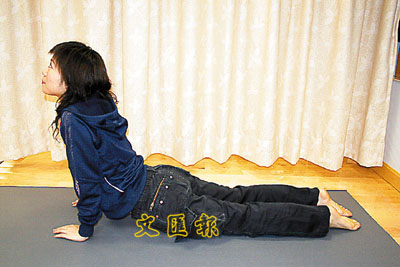 ■最適合女性,可修腰、修臀部及大髀。雙腳並排拉直,雙手按在地上,支撐上半身,抬頭。每次停頓約5至10次調息。