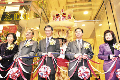 ■工銀亞洲上環分行開幕,董事暨副總經理黃遠輝(中)剪綵。 本報記者張偉民 攝