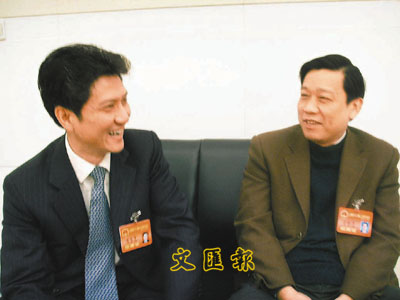 ■凌寶亨(左)呼籲政府提供更多政策扶植,以開發更多品種的股票衍生產品。旁為錦江國際集團董事長俞敏亮。 本報記者汪盈 攝
