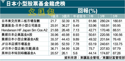 另外,景順日本小型企業基金年初至今的表現亦優於同儕,讀者不妨留意。日本的小型股基金大都集中投資在當地的內需市場,如:服務業、地產業、零售業等,故當日本內部消費復甦時,此等基金就最有望受惠,如果日本能夠在今年擺脫通縮,當地的消費市道將更值憧憬。