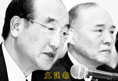 ■柯尼卡03年與美能達合併。圖為當時的雙方總裁。資料圖片