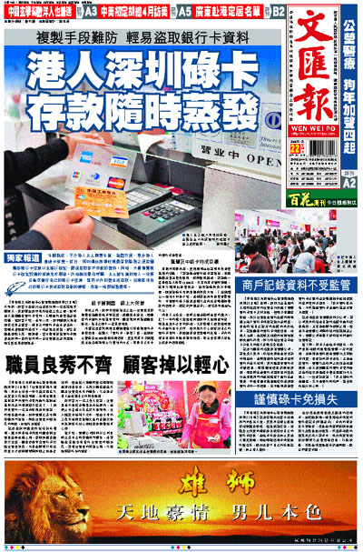 消息人士指出,目前正值春節前最後的幾天,忙了一年的港人往往偷閒到深圳大量購置年貨。而為避免不必要的麻煩,大多數港人選擇使用銀行卡進行電子支付。但如果不小心保管好自己的銀行卡資料,將面臨被複製密碼的危險,卡內的現金也隨時可能被提取殆盡,甚至會替別人背負上沉重的信用債務。