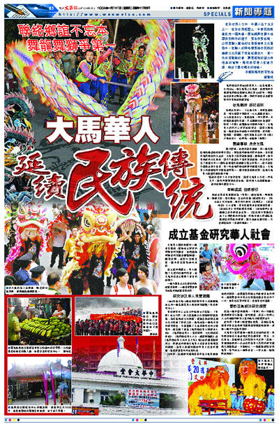 在全世界人口中,中國人佔了五分之一,在全世界版圖上,中華民族散落在每一個角落。那些離開祖國大地漂流到海外的遊子,要生存要發展,必然要融入當地的社會環境和文化習俗中。在融入的同時還要將本民族的傳統文化保留下來並發揚光大,是一件非常艱難的事,需要超強的毅力和極高的智慧。馬來西亞華人在這方面,做出了舉世矚目的榜樣。