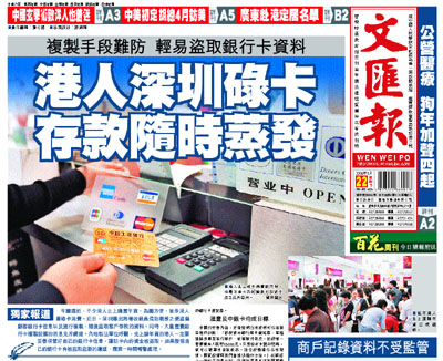 消息人士指出,目前正值春節前最後的幾天,忙了一年的港人往往偷閒到深圳大量購置年貨。而為避免不必要的麻煩,大多數港人選擇使用銀行卡進行電子支付。但如果不小心保管好自己的銀行卡資料,將面臨被複製密碼的危險,卡內的現金也隨時可能被提取殆盡,甚至會替別人背負上沉重的信用債務。