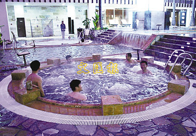 ■遊客在海泉灣享受海洋溫泉。實習記者 羅陽 攝