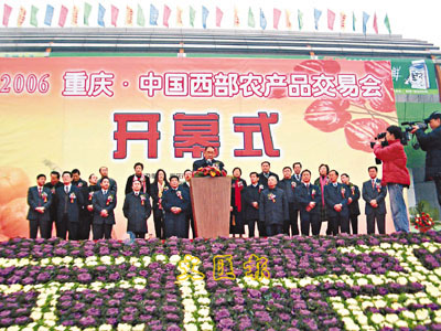 「2006重慶.中國西部農產品交易會」日前舉行,據主辦方介紹,此次農交會規模空前,除重慶本市的48個展團的630家企業外,還有來自四川、貴州、福建、海南、寧波等市外13個省市的101家企業參加展會,參展的農產品的品種多達3000多個。並有台灣寶豐農業開發有限公司、南美園藝有限公司等6家企業帶來的台灣水果、茶葉等也首次亮相重慶。