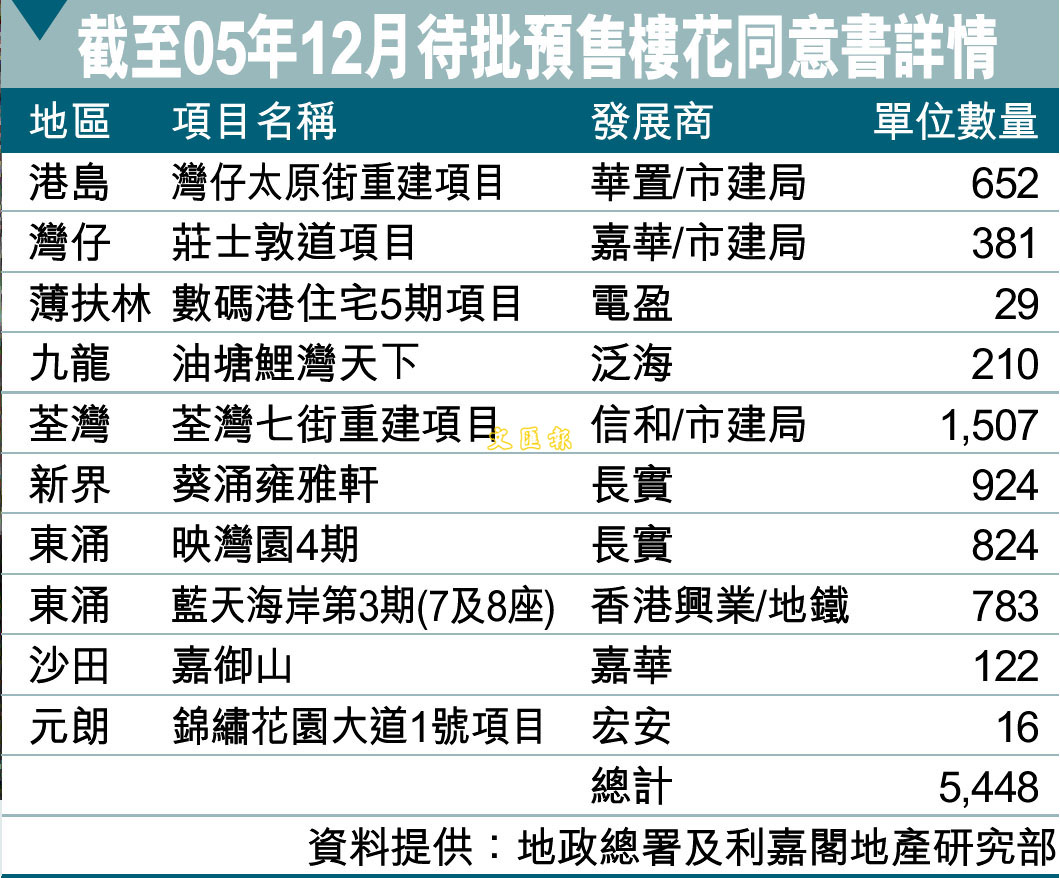 截至05年12月待批預售樓花同意書詳情 (圖)