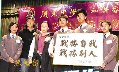 【本報訊】(記者 李思穎)前體操金牌選手劉璇與方力申(Alex)昨日參與《心繫奧運》系列活動,兩人到粉嶺一所學校跟學生們分享奮鬥心得,劉璇更送上「戰勝自我、戰勝別人」字牌予學生們紀念,這次劉璇來港主要是擔任昨晚《十大中文金曲頒獎禮》的頒獎嘉賓。這陣子她應付大學考試,所以進修英文一事暫且放下,至於未來動向,她正為晉身娛樂圈做好準備,希望今年多些來港。
