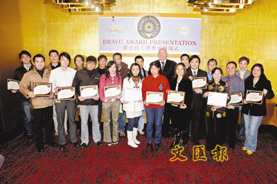 ■麥輝霆總裁與獲「傑出員工」獎之員工合影。