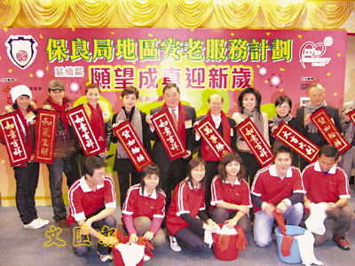 【本報訊】保良局昨日假該局觀塘長者地區中心舉行「保良局地區安老服務計劃延續篇之願望成真迎新歲」,除了邀得房屋署署長陳鎮源太平紳士蒞臨主禮,以及商業電台對外事務總監招雪梅出席外,更得到演藝界嘉賓出席呼籲,並於活動後到訪多個長者住所致送揮春,以行動支持敬老及護老。
