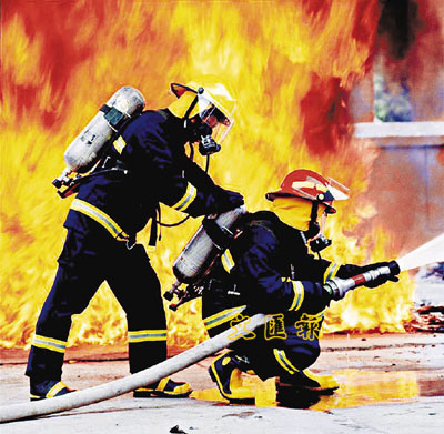 ■北京消防人員進行滅火演習。 本報北京傳真
