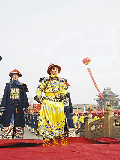 【本報駐山西記者楊亮太原31日電】山西人以各種方式迎接春節的到來。生「旺火」,祭祖先,趕廟會等各有特色。山西榆次為慶祝春節,引進了原汁原味的「老北京」廟會,廟會有扮演「乾隆爺」的代表(見圖),祈求「風調雨順、國泰民安」的皇家祭祀禮儀節目、耍中幡、摔交、捏麵人、木偶戲等老北京天橋絕活。這次特意為春節準備的廟會會持續到農曆的大年初七。
