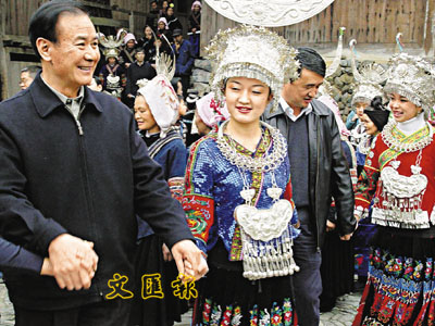 ■石宗源書記與苗族群眾同跳苗族舞。 本報貴州傳真