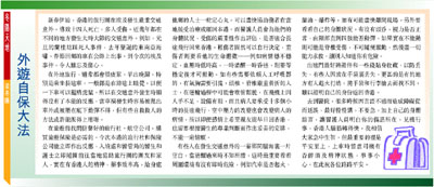 出遠門最好將證件和一些錢貼身收藏,以防丟失,有些人因放在手袋裡丟失,更甚的是有的地方有人趁火打劫,將手袋和行李搶去而找不到,難以證明自己的身份返回香港。