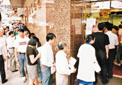 ■北京控股97年招股上市,市民排長龍領認購表。 資料圖片