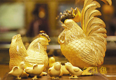 ■「金雞納福」新品純金擺件上海熱銷,吸引市民購買收藏。