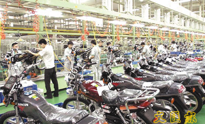 重慶隆鑫電單車整車生產線一片繁忙。電單車是目前中國重要的機電出口產品,也是全球化特徵最明顯的機電產品之一。 新華社