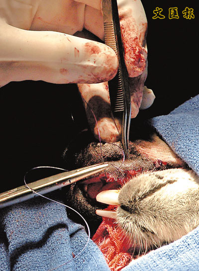 ■為了重拾「袋鼠明星」的可愛形象,醫生小心翼翼地為牠進行整形手術。美聯社