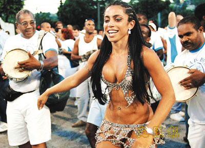 最聞名的森巴舞學校Mangueira去年僅得第6名,力爭在今年一雪前恥。森巴具有濃厚的非洲殖民色彩,低音鼓敲擊出的奔放節奏,即興創作的抒情歌詞,豐富的和聲,無疑是非洲音樂的縮影。 (業欣)