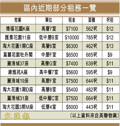 區內近期部分租務一覽 (圖)