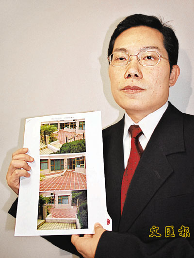 ■鄭先生展示其單位連平台的照片。聶曉輝 攝