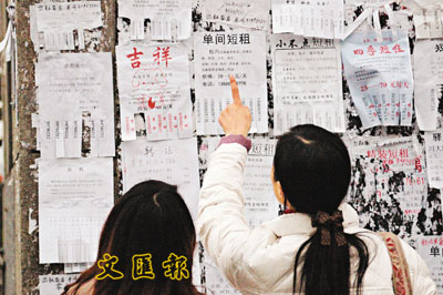 今日上午,記者在四川大學的佈告欄的牆壁上,看到重重疊疊地貼滿了諸如「輕鬆驛站」、「四季短租」、「如意公寓」、「小不點短租」、「詩意空間」等五花八門的一日短租房廣告。佈告欄前,圍著一大群男女學生。一日房的價格最低的只有25元人民幣,最高的也不過60元人民幣。