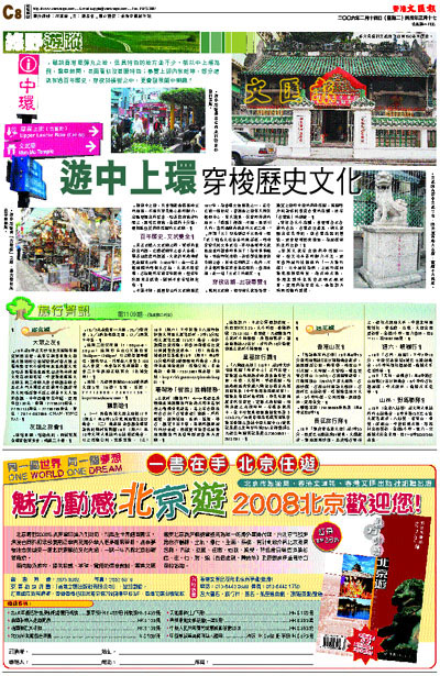 如果大家有意到荷李活道一帶,但又怕辛苦和腳力不足,或可參考旅行社提供的「一天遊行程」。以中旅社為例,上述行程加遊東西博寮海峽、薄扶林水塘,享用北歐特色美食及潮式風味宴,費用約為百多元,是星期天消閒活動的選擇。