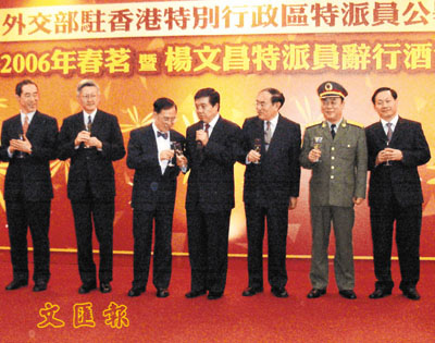 外交部駐港特派員楊文昌將於下周返回北京,結束多年的外交生涯。離別在即,依依不捨之情溢於言表。在外交部駐港特派員公署昨日舉行的新春暨特派員楊文昌辭行酒會上,楊文昌坦言,雖然他即將離開香港,但看到香港今天的穩定繁榮,他是「走得愉快」的。他形容,在自己外交生涯的最後一站,能見證鄧小平「一國兩制」偉大構想正在向縱深發展,是一生的榮耀。