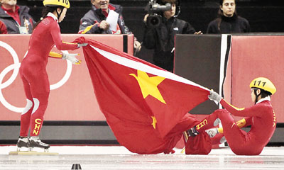 美聯社:對中國人來說,前幾日的失利使得他們要求在競爭特別激烈的短道速滑比賽中不容有失。王濛完美地達到了國家的期望,她一直保持領先並奪冠。直到慶祝時她才受到了小小的「挫折」,她被國旗絆了一下。
