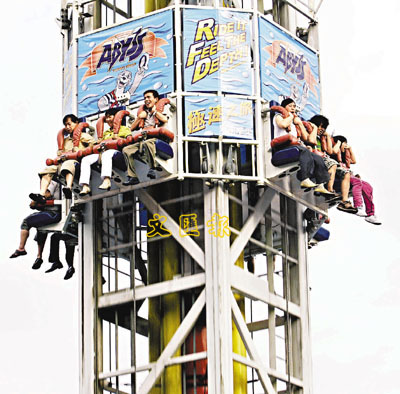 ■昨日有內地遊客玩海洋公園「跳樓機」機動遊戲後感頸部不適,須送院救治。資料圖片
