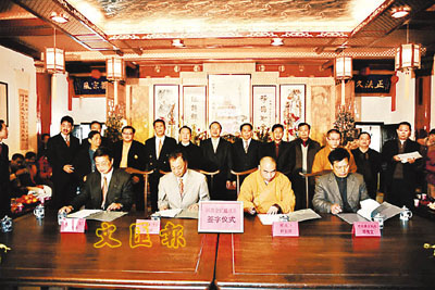 ■新興縣領導出席擴建國恩寺簽字儀式。